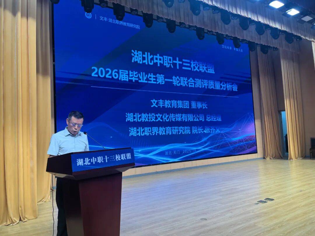 金秋送爽,硕果初绽。10月11日上午8时30分,湖北中职十三校联盟2026届毕业生第一轮联合评测质量分析会在天门市职业技术教育中心学术报告厅成功举行。作为本次会议承办方,学校以“深化校际协作、共促质量提升”为核心,携手联盟成员校与特邀单位,共同为中职教育高质量发展与毕业生升学就业赋能。