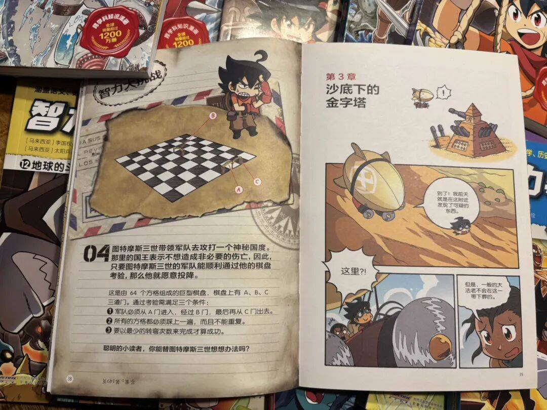 比如,我儿子最近特别迷的一套漫画《智力寻宝大冒险》,就是很好的例子。