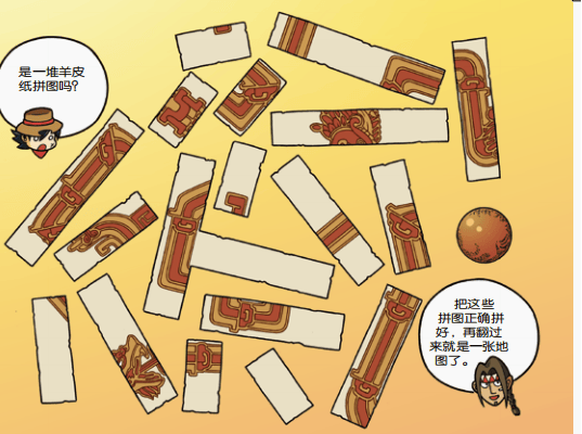 在《智力寻宝大冒险·11沙雾隐者》中,小航和朋友们发现一堆零散的纸片,要将这些纸片正确拼合起来才能找到线索。