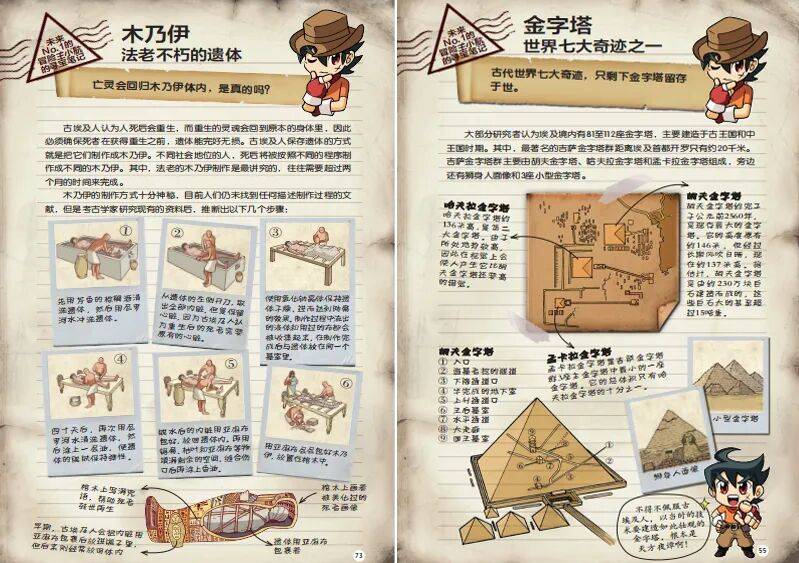 比如,有讲解金字塔的内部结构和木乃伊的制作方式。
