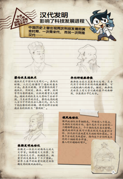 麻药出自东汉名医华佗的麻沸散。看完这本书后,孩子对汉朝科技的认识会大大加深,很难遗忘。
