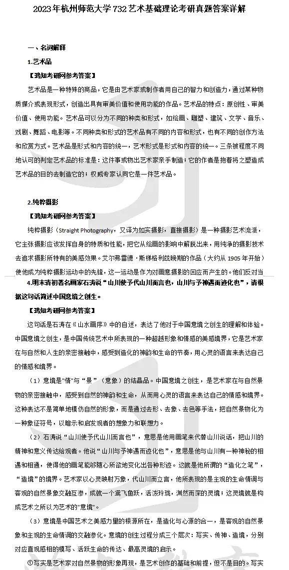 2023年杭州师范大学732艺术基础理论考研真题案详解