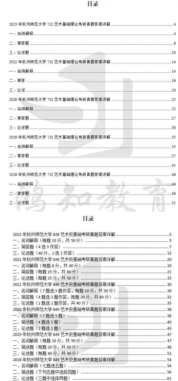 2018-2020,2022-2023年杭州师范大学732艺术基础理论考研真题参考答案【无21】