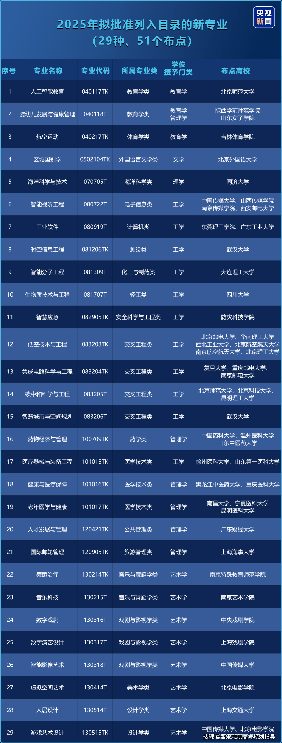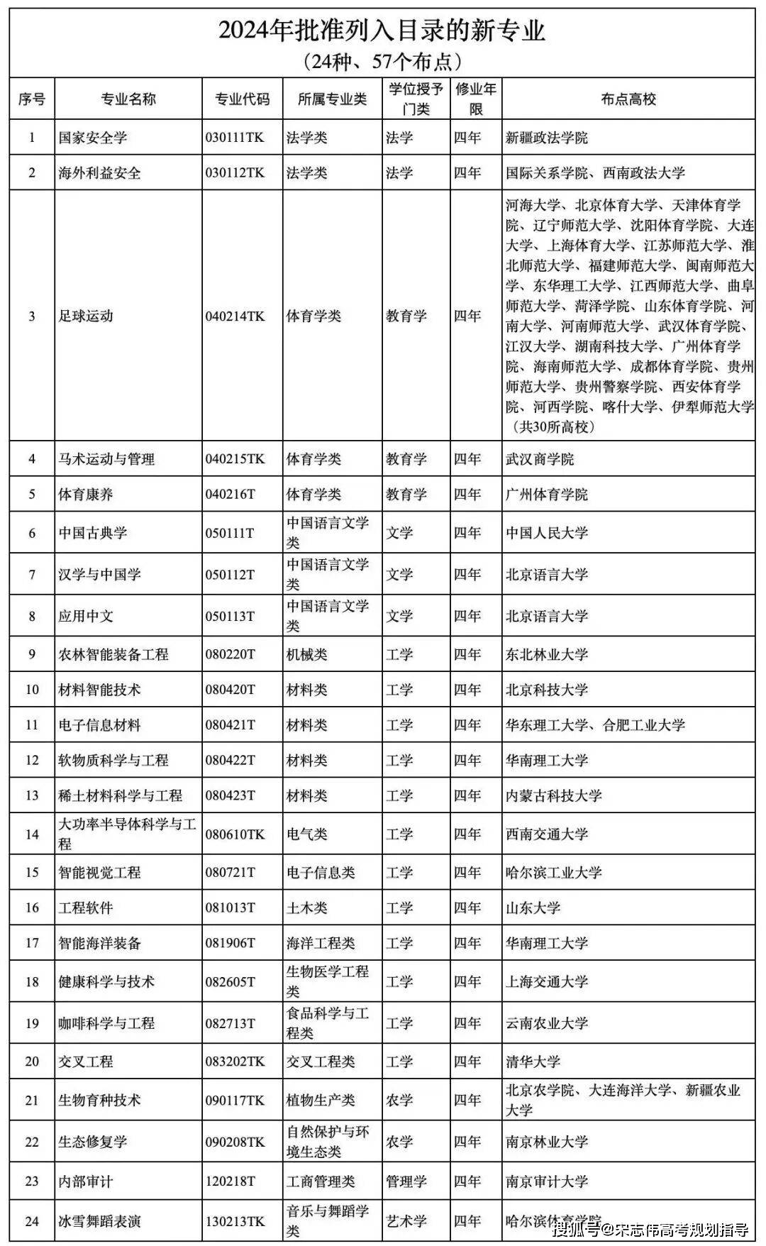 2024年:也有24种新专业被正式纳入本科专业目录。