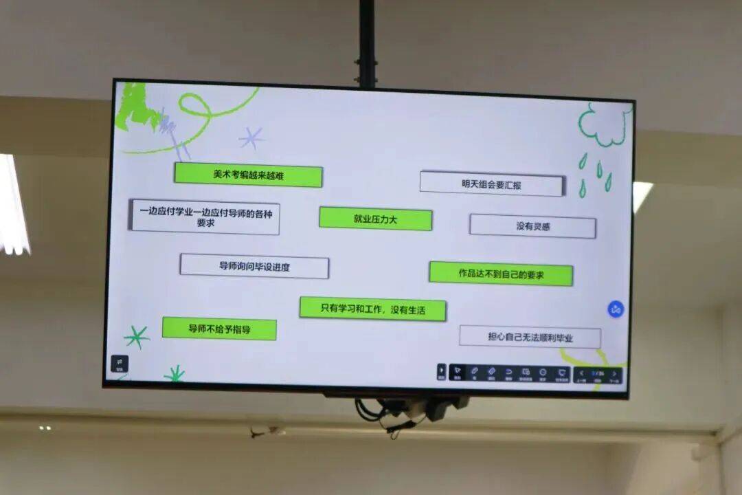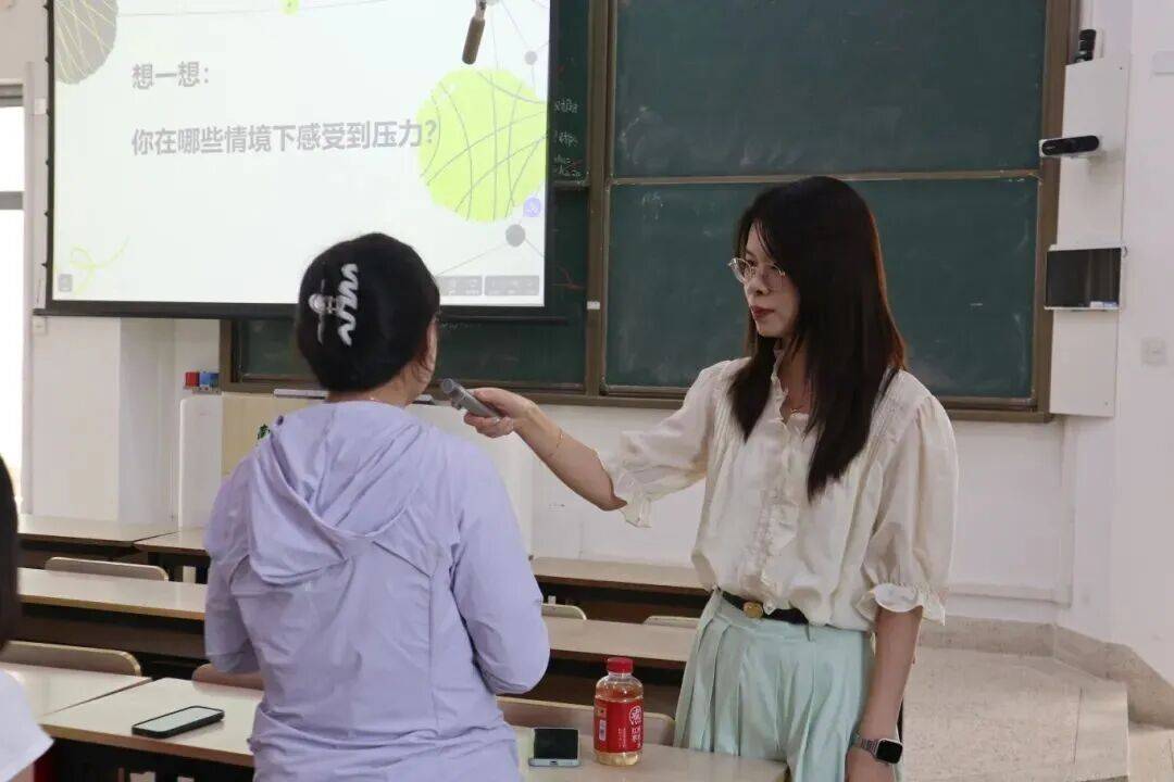 讲座伊始,吴慕窈老师从现实情境出发,指出焦虑是研究生普遍面临的情绪体验,她特别结合美术专业学生的实际,分析了在创作瓶颈、职业规划、导师互动等场景中的焦虑来源,并通过现场互动引发共鸣。同学们踊跃分享了自己对“学业成果压力”“生活与学业平衡困难”等问题的感受,进一步深化了大家对焦虑常态性的理解。