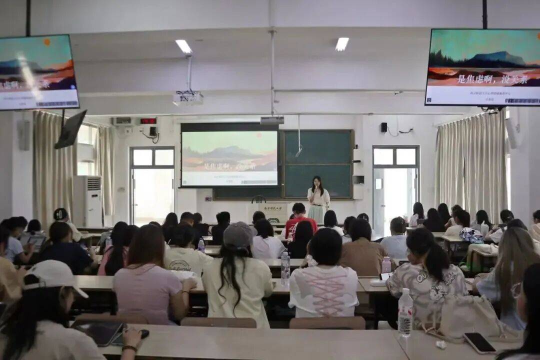 2025年9月15日下午,美术学院研究生心理健康教育专题讲座在学海楼312教室开展。本次讲座由心理中心吴慕窈老师主讲,聚焦美术学院研究生群体常见的焦虑困扰,旨在帮助新生正确认知焦虑本质、掌握科学压力调适方法,以积极心态开启研究生阶段的学业与创作旅程。2025级全体研究生新生参加了此次讲座。