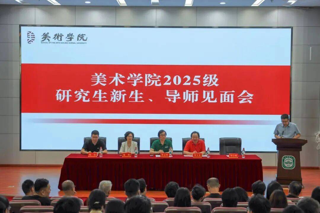 2025年9月6日晚18:30,美术学院2025级研究生新生、导师见面会在仙林校区图书馆东报告厅顺利召开。院党委书记郭志峰、院长刘玉龙、副院长施茜、副院长赵亮、党委副书记周宗师,各专业导师及辅导员老师出席见面会,全体2025级研究生新生参会,见面会由党委副书记周宗师主持。