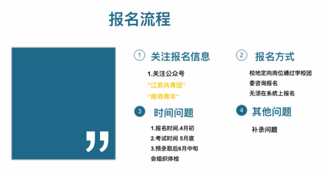 王俊钧学长详细解读了江苏省选调生的政策特点、报考条件与独特优势。他结合自身备考经历,分享了考试内容并推荐了笔试周期备考计划。
