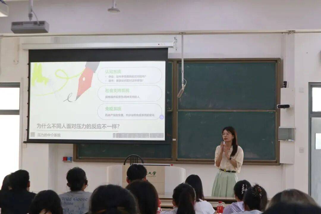 在系统介绍“心理压力”的概念后,吴老师重点阐述了压力中介调节系统的三大组成部分,并分别提出具体可行的调节策略。她强调,焦虑是正常的情绪,且具有进化意义,能帮助人类应对挑战;同时建议大家学会与变化、压力共处,打破焦虑恶性循环。