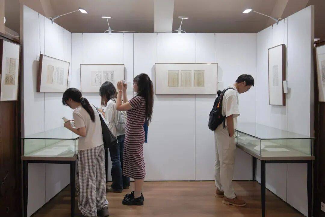 三四层正举办以“百侣三江,毓秀金陵”为主题的近现代教育文献展。展览精选知名校友的手译稿、教育方家的遗墨及珍贵校史文献,集中呈现深厚的人文精神、严谨的工匠精神、真挚的家国情怀与鲜明的红色文化。党员同志们在近现代名家手稿前,凝神细品,深切感悟字里行间蕴含的独立思想与坚定信仰,由衷体会身为华夏儿女的自豪与荣光。
