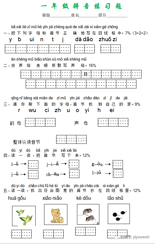 汉语拼音练习题