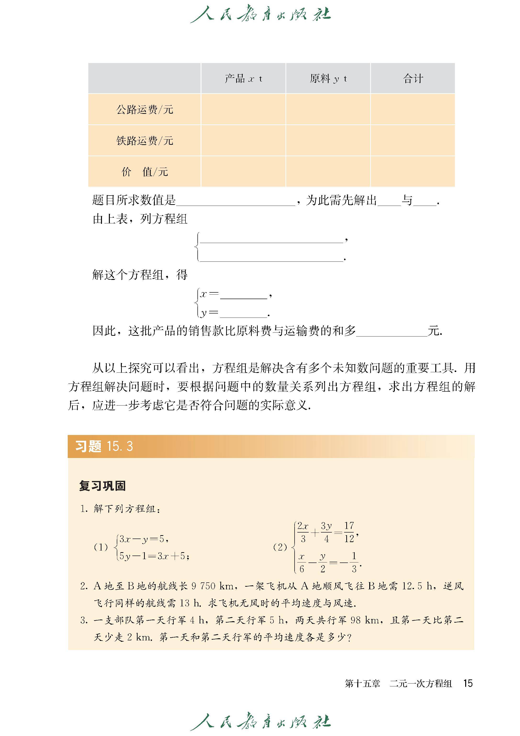 15.3 二元一次方程组与实际问题