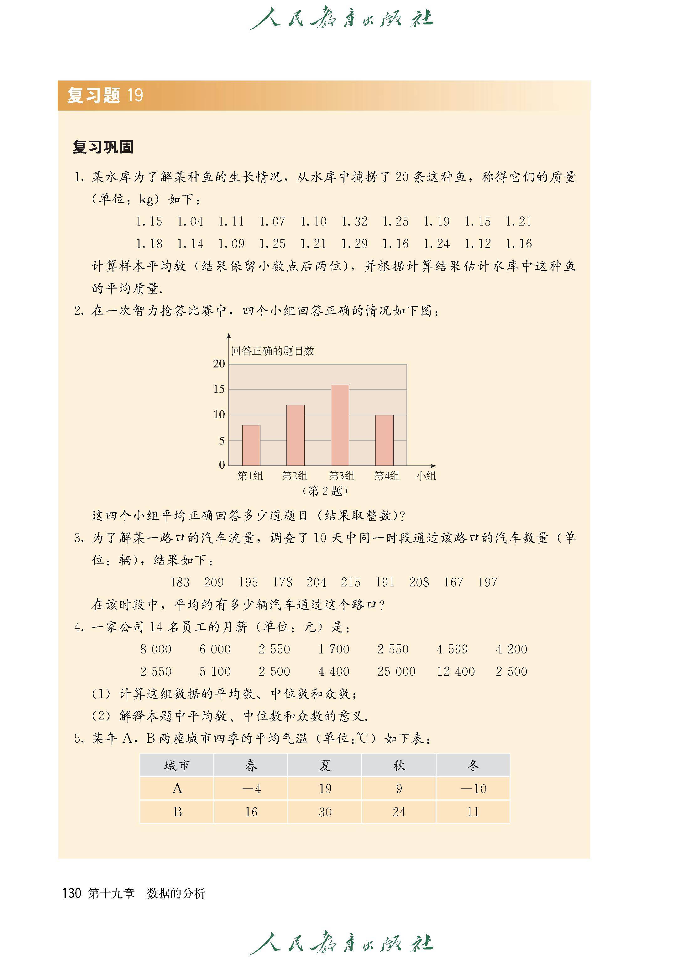 19.1 数据的集中趋势