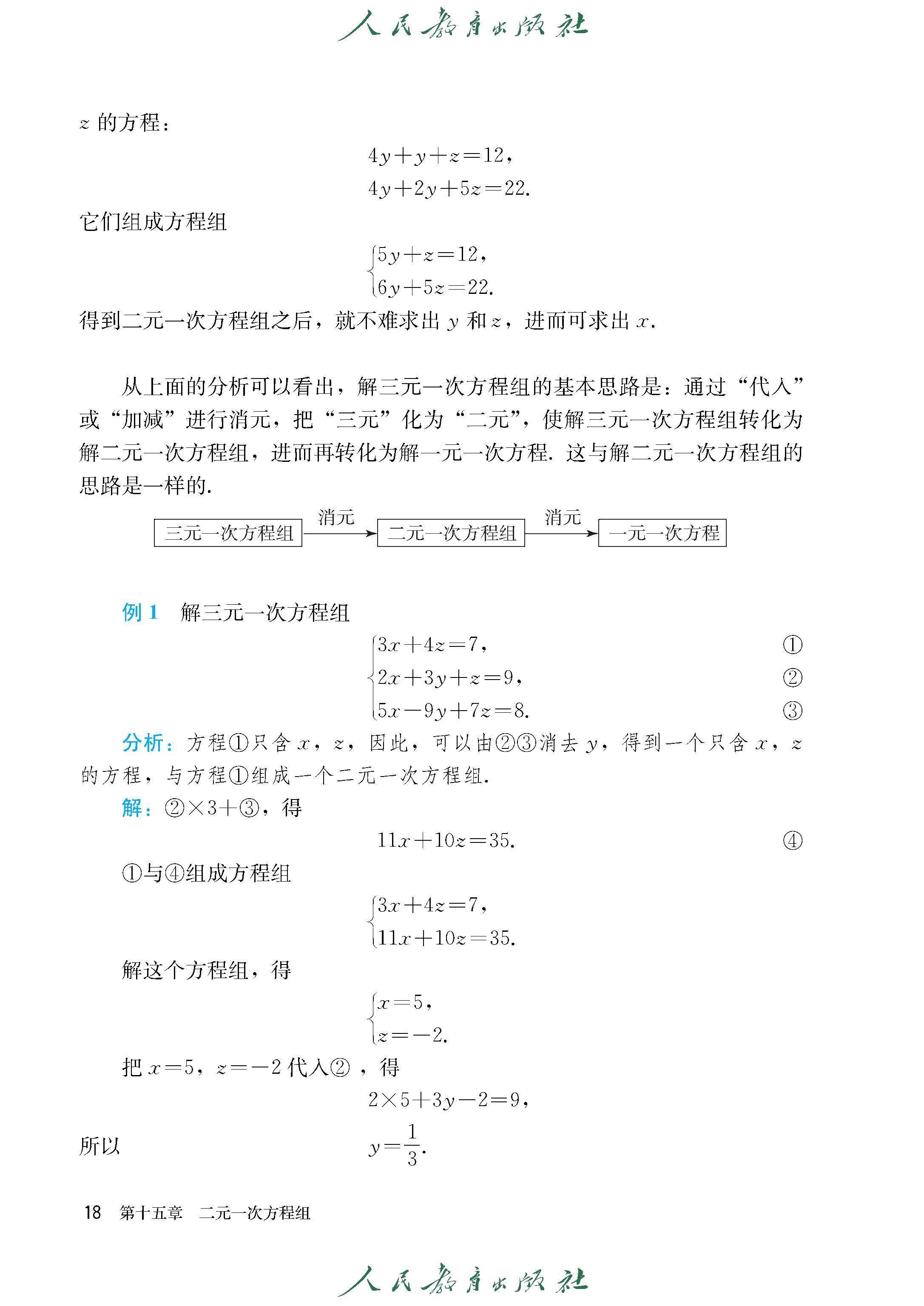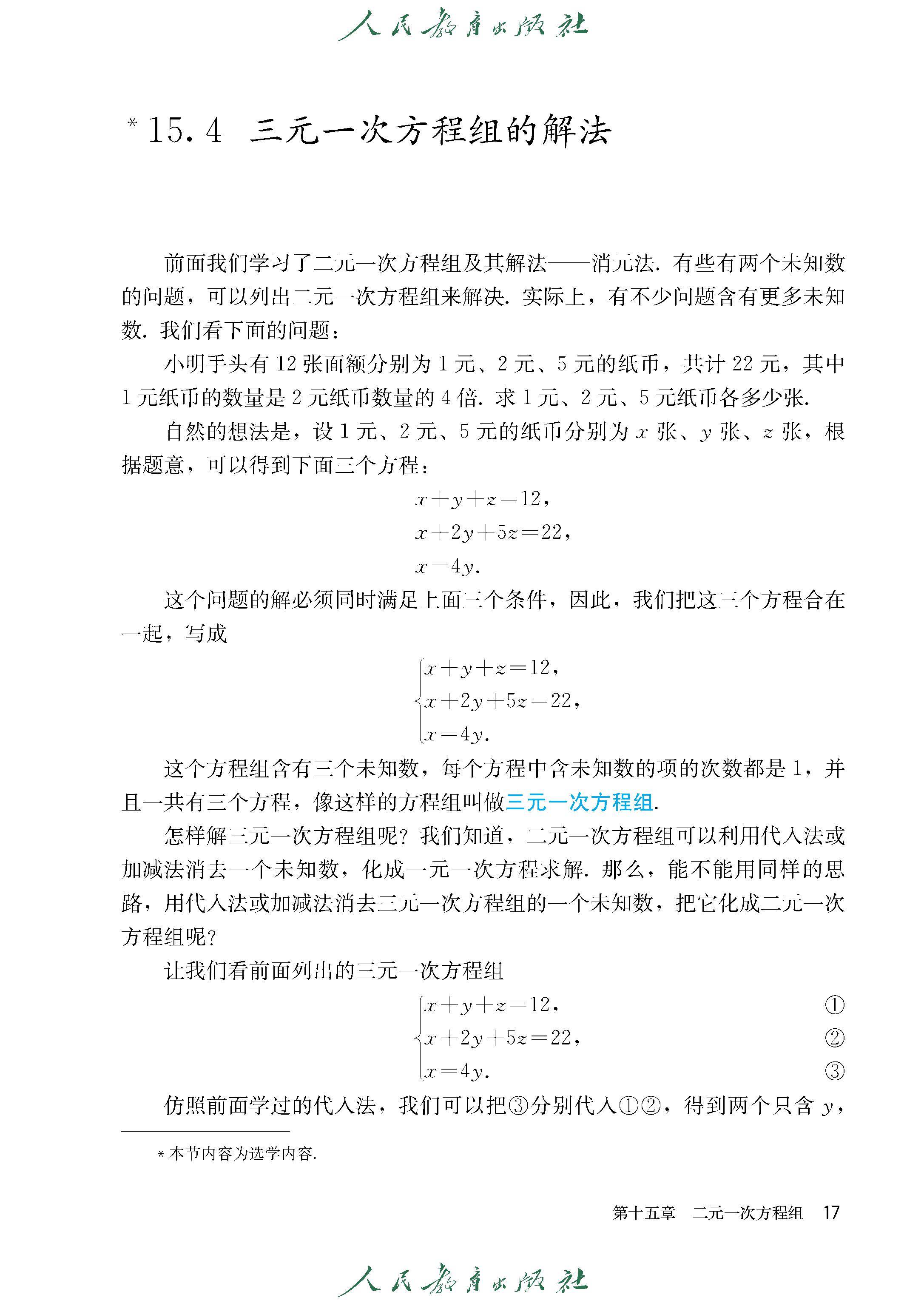 15.4 三元一次方程组的解法
