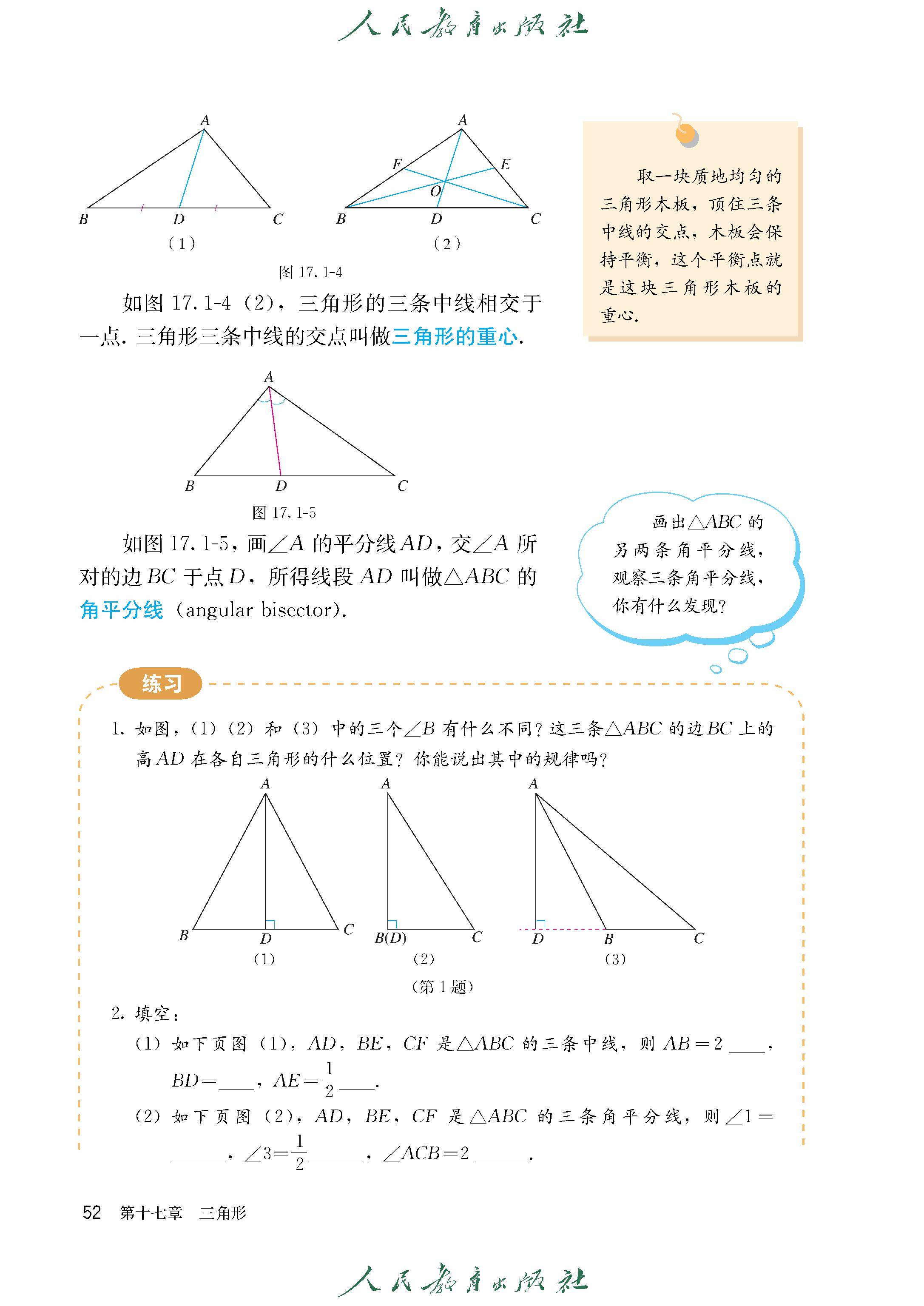17.1.2 三角形的高、中线与角平分线