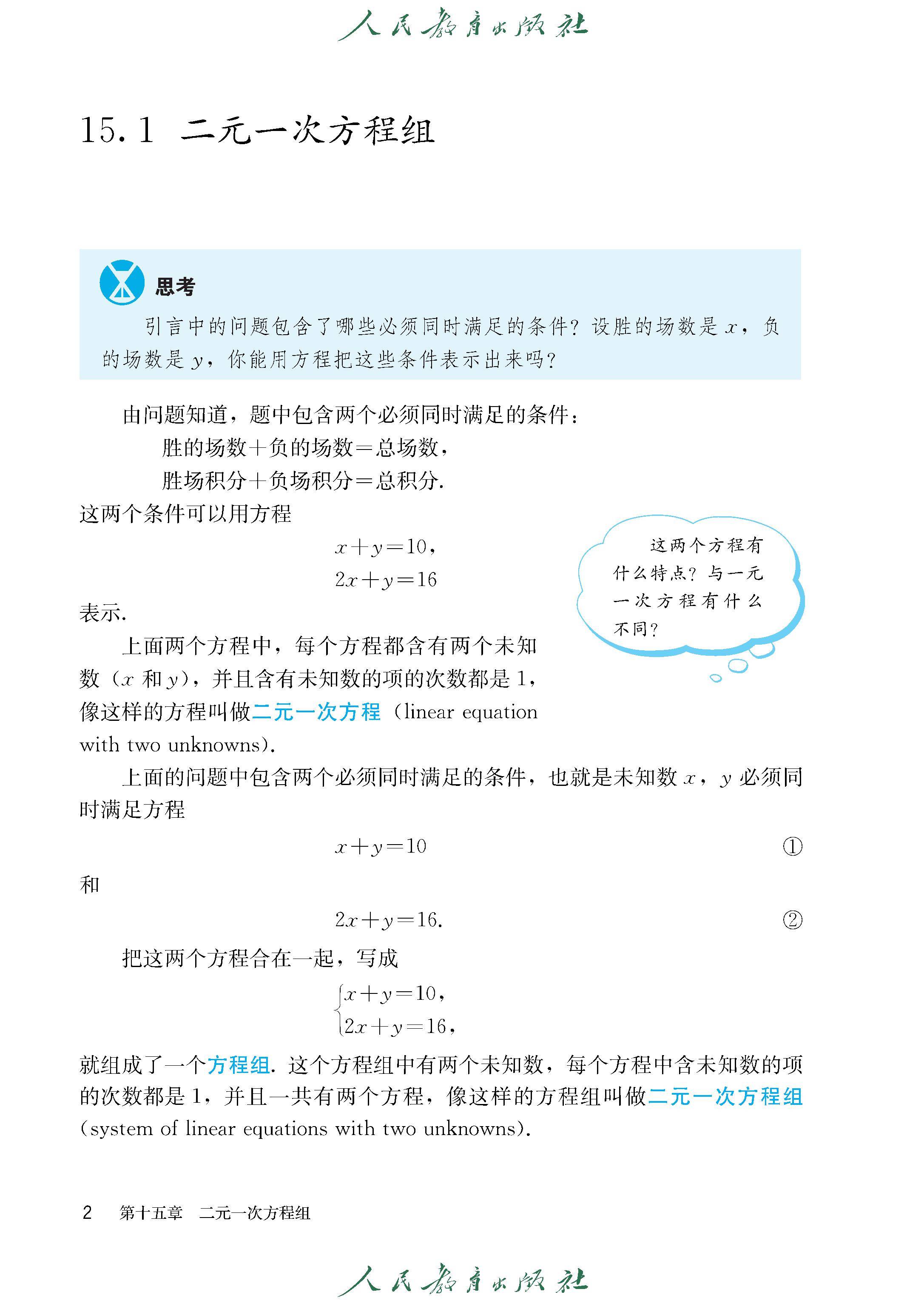 15.1 二元一次方程组