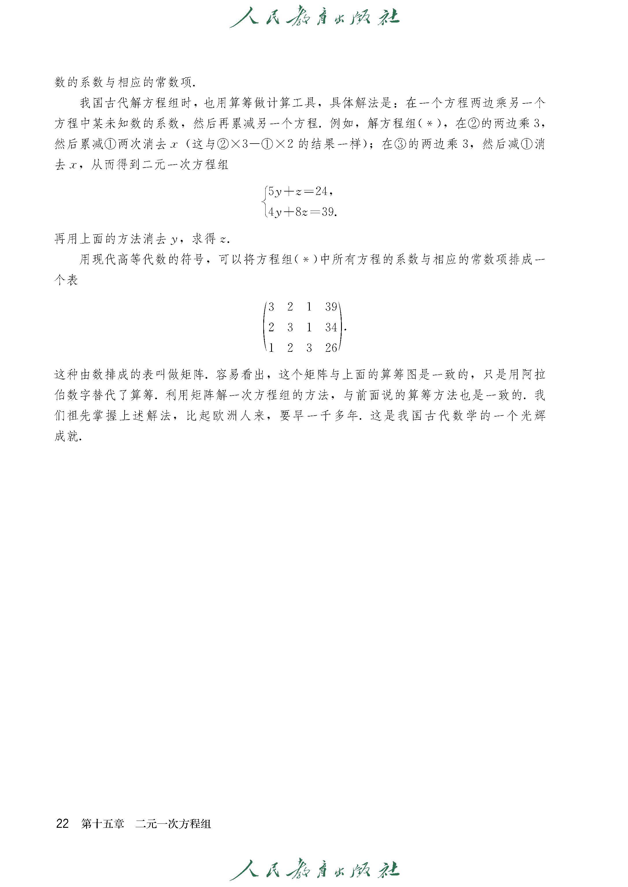 阅读与思考 一次方程组的古今表示及解法