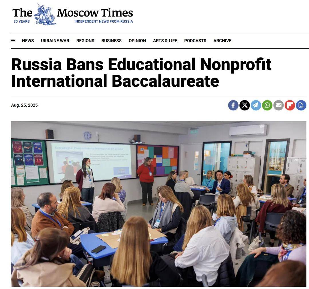 近日,据莫斯科时报的报道,俄罗斯以“非法组织”名义封禁国际文凭组织(IBO),指控其课程渗透西方价值观、歪曲历史并煽动反俄情绪。