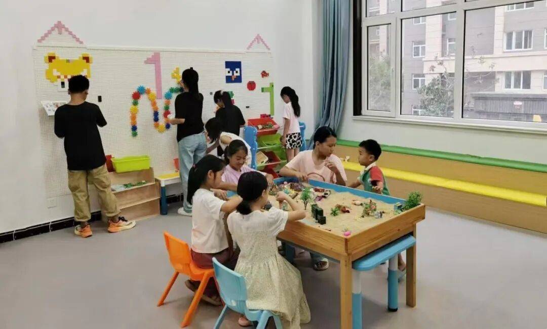 “蓓蕾计划”童趣成长基地。聚焦少儿成长需求,通过科普讲座、非遗传习、“丹青绘童心”、四点半课堂、研学活动五大特色项目,为孩子们打造趣味与知识兼具的成长乐园。社区科普活动室配备平衡测试、动量守恒、磁力转盘等展台式、壁挂式、桌面式科普教具55件,用于科普活动展示和科普知识宣传,依托“重点时节”开展丰富多彩的科普讲座活动。非遗传习课堂里,邀请当地非遗传承人走进社区,在学习彩蛋绘制、剪纸等传统技艺过程中,感受传统文化的博大精深,传承匠心,增强文化自信。邀请“丹青美术”入住社区,通过“丹青绘童心”绘画活动鼓励孩子们用画笔表达内心世界。无论是水彩涂鸦,还是主题创作,孩子们都能在自由创作中释放想象力,用色彩描绘心中的美好,目前已开设4期活动。四点半课堂为孩子们提供了温馨的课后学习环境。辅导老师不仅帮助孩子们高效完成作业,还设置益智游戏、趣味小课堂,填补放学后的教育空白,解决家长后顾之忧。东城街道联合绿禾庄园教育科普基地、孟渚林开展体验农耕、户外亲子活动等研学活动,激发孩子对自然科学的兴趣,培养良好亲子关系。