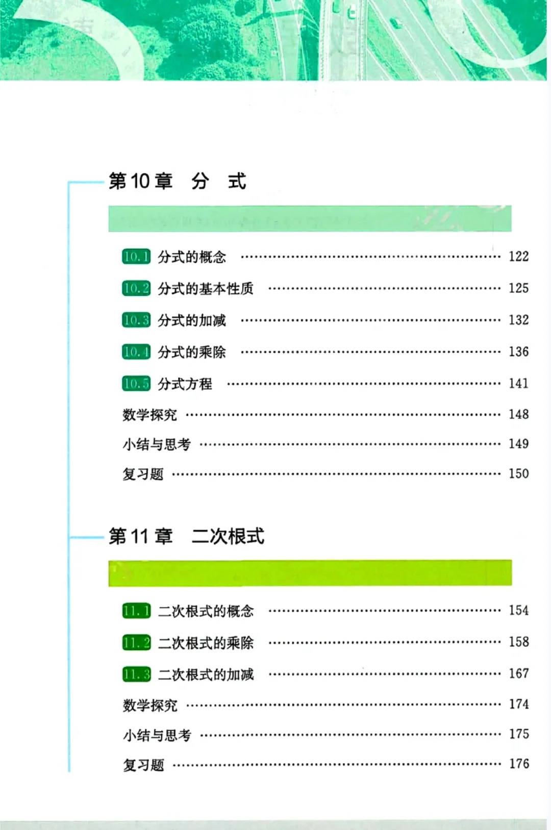 八年级是数学知识深化与拓展的关键阶段,学生面临更多复杂的数学概念与知识体系。清晰的目录能让学生快速把握整册课本的知识框架,明确各章节的核心内容与学习重点。各章节对知识点的系统讲解,能帮助学生扎实掌握分式、二次根式、四边形、因式分解、数据统计与概率等重要知识,这些知识不仅是八年级数学学习的重点,也是后续九年级数学乃至高中数学学习的基础。数学探究、综合与实践等板块,能培养学生的数学思维、探究能力与应用意识,让学生学会用数学知识解决实际问题。小结与思考、复习题则有助于学生及时梳理知识、查漏补缺,巩固所学内容,提升解题能力,为应对各类数学考试,尤其是中考数学复习奠定坚实基础,是八年级下册数学学习的绝佳辅助资料~