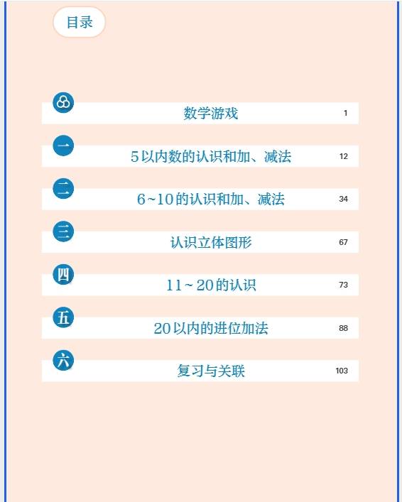 人教版一年级数学(上册) 新教材电子课本在线阅读(此为截图版,获取是高清版)