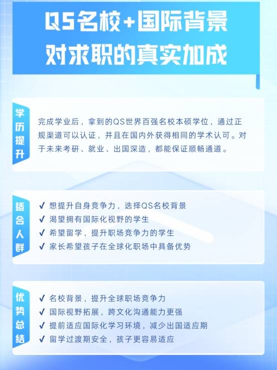 但问题来了,很多学生误以为凭借一个QS名校的学位就能轻松找到理想的工作。其实,名校背景固然重要,但能否最大化地利用这一背景,才是关键。