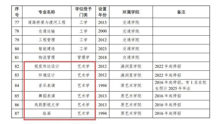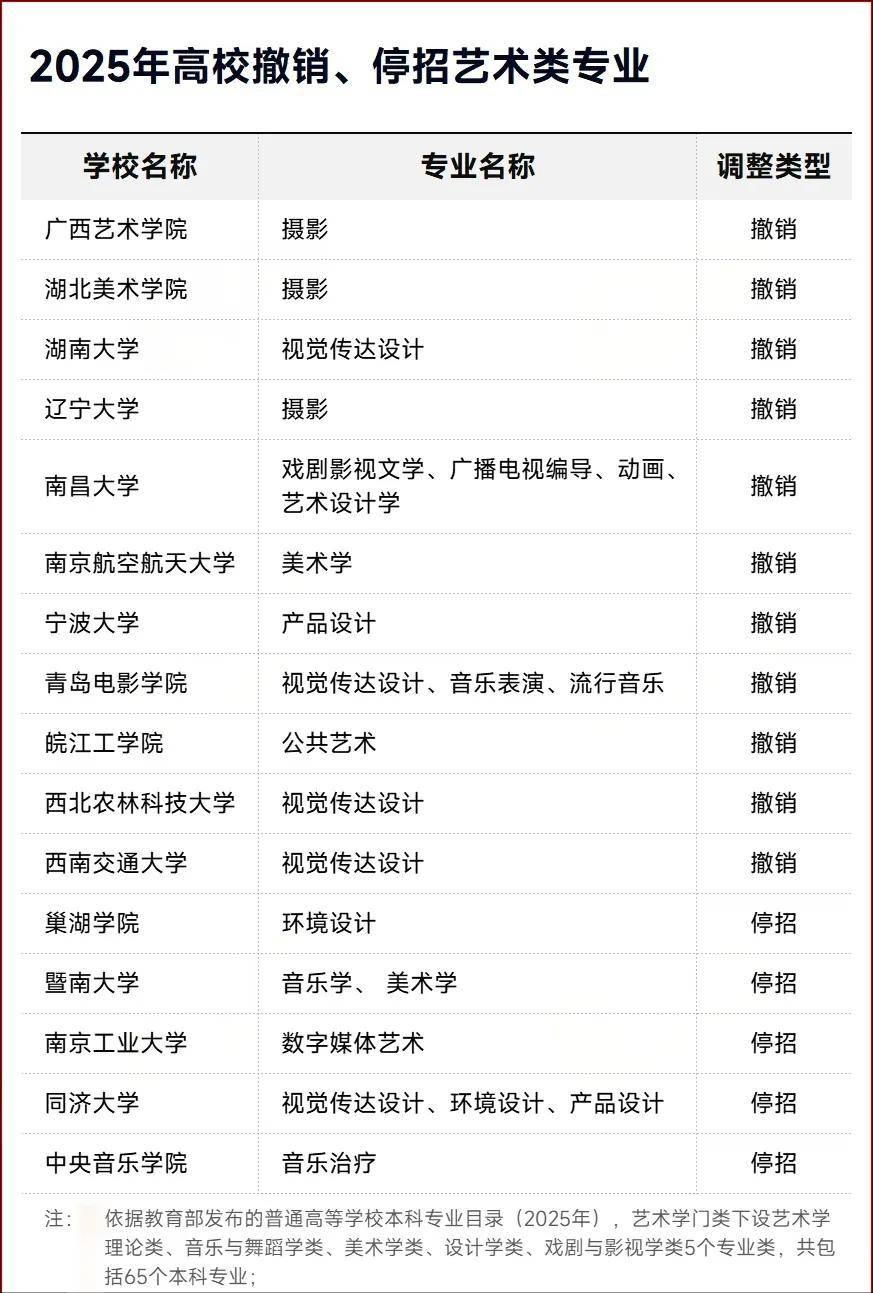 2025年,艺术类专业出现在多所高校的撤销、停招专业名单中。