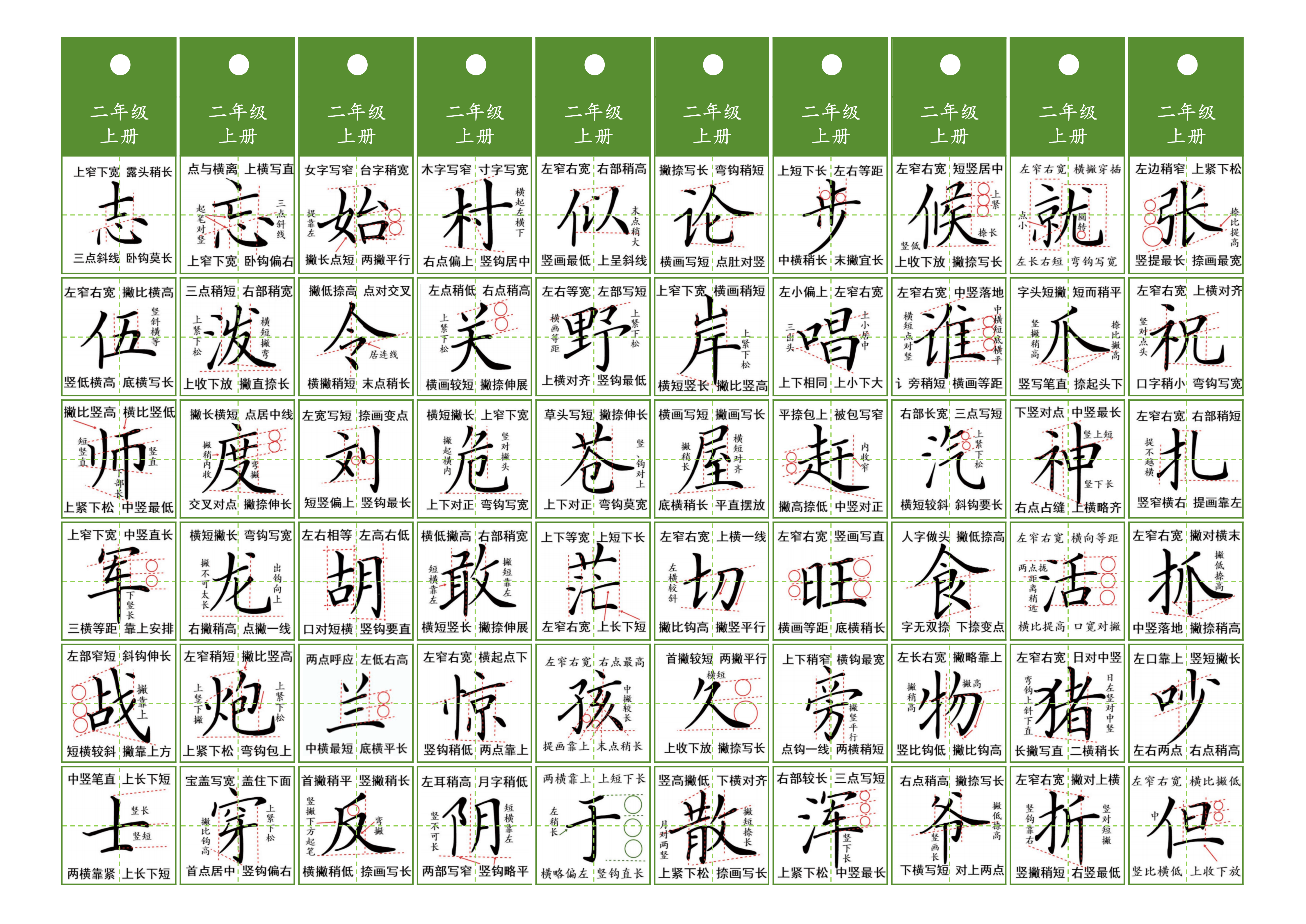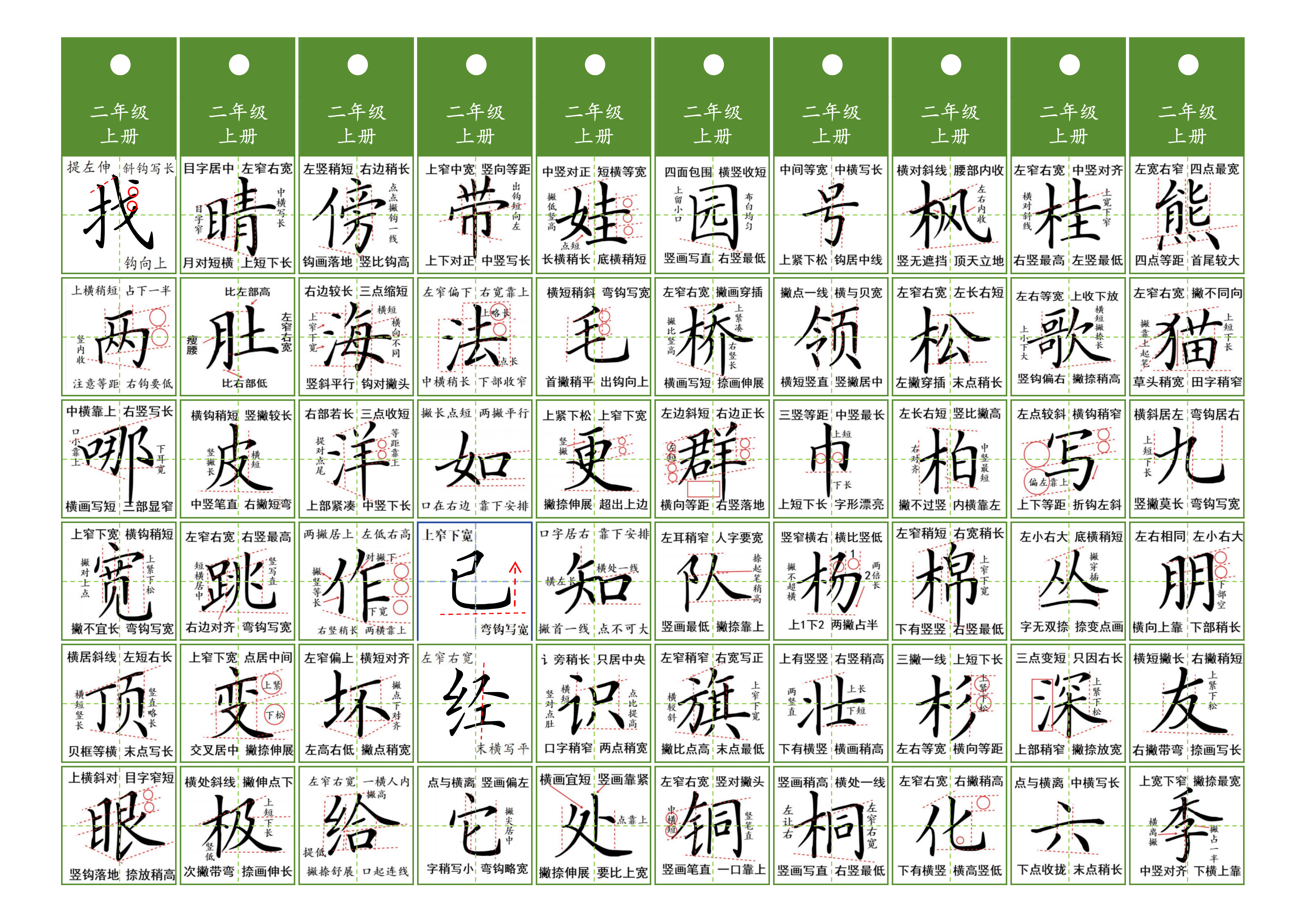 今天给大家分享:对于二年级的小朋友来说,汉字书写是语文学习的重要一环。工整、规范的书写不仅能提升卷面分,更能培养孩子的专注力与审美能力。今天,我们就以二年级上册生字为例,带家长和孩子一起解锁汉字书写的奥秘,让每个生字都能 “站得正、写得美”。