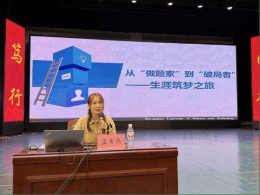 教育部“宏志助航计划”培训讲师孟秀燕副教授以“从‘做题家’到‘破局者’——生涯筑梦之旅”为主题,阐述了大学阶段生涯发展的基本逻辑。巧妙结合专业行业的就业数据以及典型的职业发展案例进行深入剖析。