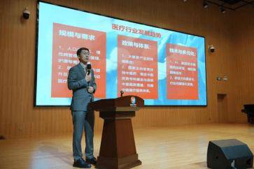 赵冰以“为何学医”这一根本问题为切入点,结合其丰富的从业经历与深刻的行业观察,从医学的社会价值、个人理想追求与职业责任感等多维度,深入剖析了选择医学道路的核心驱动力,引导学生筑牢职业基石。随后,他围绕“医学知识技能储备”建议学生通过标准化病人实训、模拟手术室演练夯实临床操作功底,又要主动参与转化医学研究项目,掌握数据统计分析、实验设计等科研方法,实现从“技能操作者”到“问题解决者”的进阶,为未来多元化发展奠定基础。同时,他就“医疗行业发展前景”进行了系统阐述,梳理了临床医疗、医学研究、公共卫生、医药研发、医疗管理、医学教育等多元就业创业路径,并通过具体案例生动介绍了各领域的岗位需求、工作内容与职业特点,有效打破了“学医即从医”的传统认知局限,拓宽了学生的职业视野。最后,他分析了行业发展趋势,指出人工智能在影像诊断、远程医疗等领域的深度融合,以及老龄化社会带来的康复、老年护理等新兴需求,预判了精准医疗、智慧医疗和大健康产业巨大的发展潜力与就业空间。