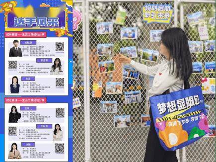 每位郑商新生的录取通知书中都有一张“梦想卡”,将自己对于大学生活和未来人生的美好期许写在“梦想卡”上,亲手投递至“梦想加油站”,标志着自己的生涯之路在今天从郑商启航!在“悦启职程”环节通过绘制个性笑脸,强化自我认知;在“生涯棋遇”棋盘游戏中,不知不觉思考决策的意义……创新的互动形式不仅成为传统课堂的延伸与突破,更让生涯规划意识在轻松氛围中深植新生心中。“见证梦想”的心愿墙上,那些写满目标的卡片层层叠叠,成为校园里最动人的“新生宣言”。