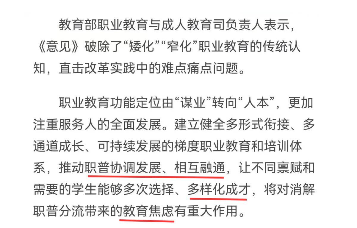 说实话,这听起来真的很棒,至少家长们稍微松了口气吧——孩子就算不进普高,也不是“没得选”。