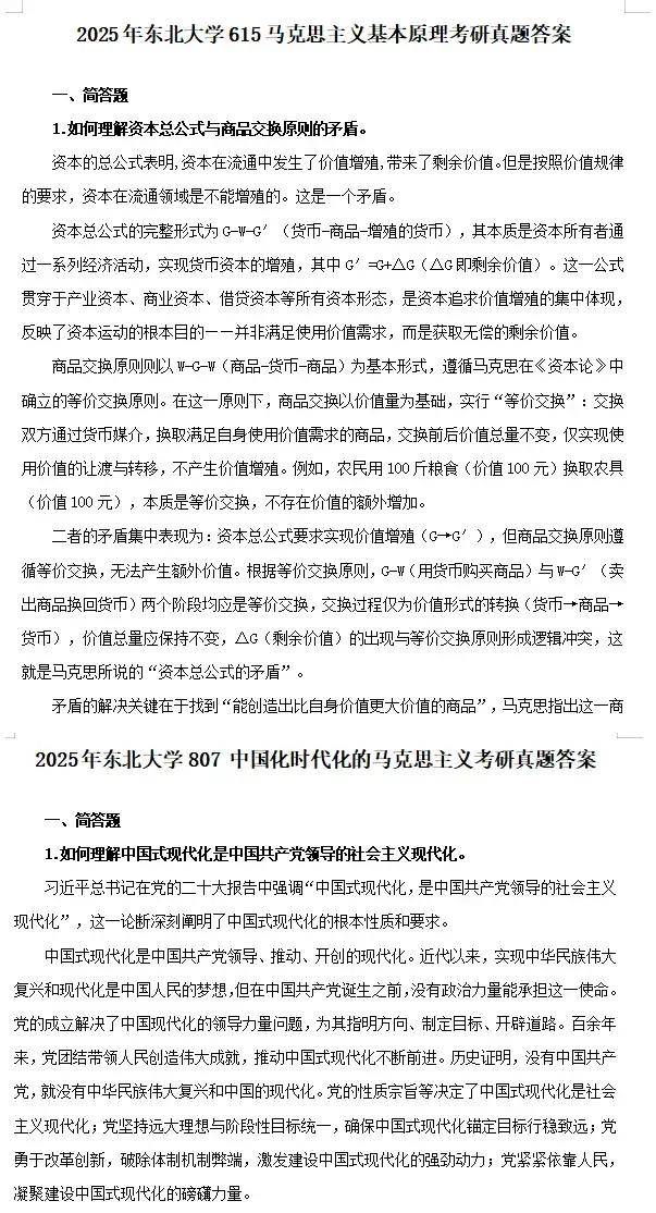 2021-2025年东北大学615马克思主义基本原理考研真题参考答案