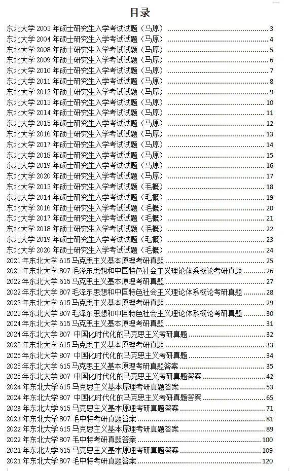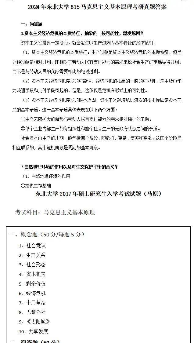 2003-2004,2008-2025年东北大学615马克思主义基本原理考研真题试卷