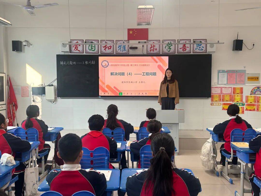 王赛儿老师执教的《解决问题(4)——工程问题》以分数除法为核心,巧妙引导学生将抽象的工程问题转化为直观的数学模型。课堂通过生活情境创设,让学生在合作探究中掌握“合修时间=工作总量÷用作效率之和”这一核心关系,并灵活运用于实际解题。整堂课思路清晰、层层递进,学生参与热情高涨,在解决问题的过程中不仅巩固了分数除法的应用,更发展了数学思维和解决问题的能力。