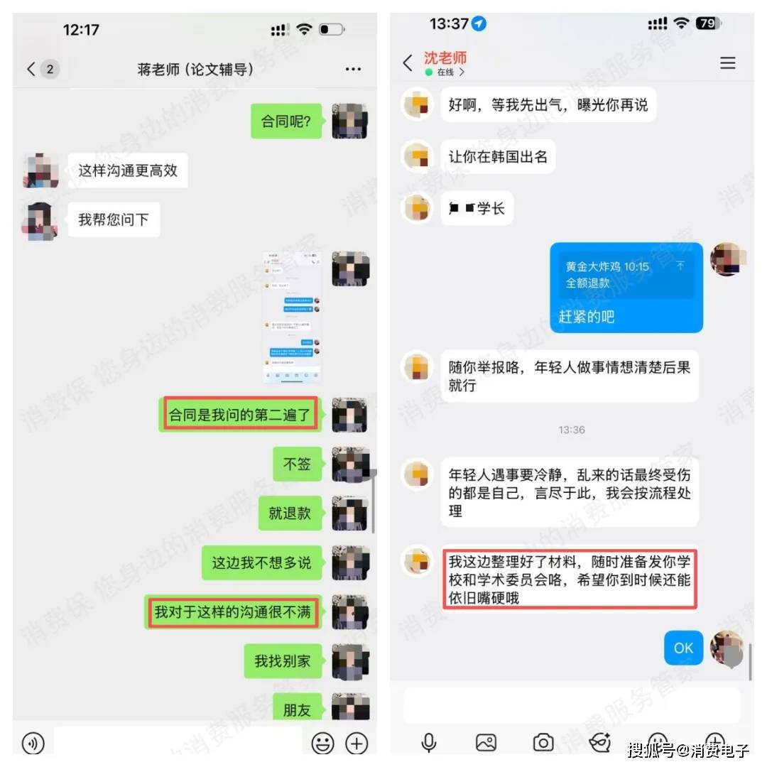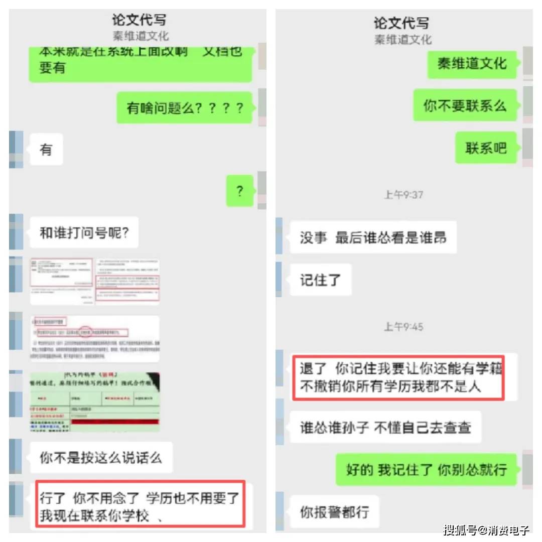 这也是此类消费问题维权难点所在,部分论文代写“黑工厂”抓住用户(不少为大学生)不敢声张闹大的心理,在消费者指出其虚假宣传问题后,甚至语出威胁,让人大跌眼镜。