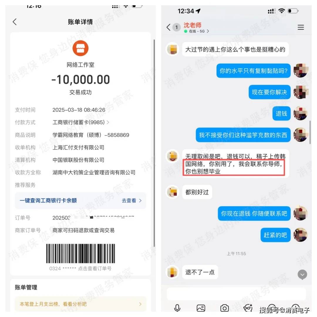 2025年3月,在韩留学的张同学通过互联网平台找到了冠学辅导(湖南辅导教育咨询有限公司),“我于3月18日上午转账10000元,购买其论文代写服务。”