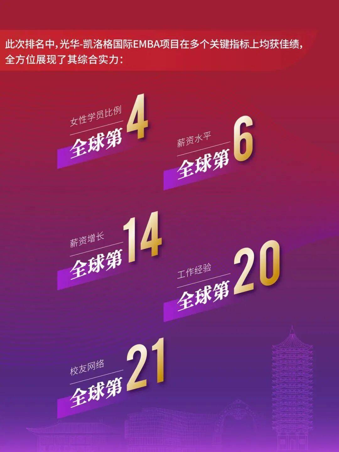 光华-凯洛格国际EMBA项目十多年来的坚持,源于我们对全球化进程坚定不移的信任。当年,光华与凯洛格开展深度合作,开创性地开辟了一条培养全球商界领袖的崭新道路。时至今日,这一合作仍在不断促进东西方管理智慧与全球商业实践的深度交融。此次排名提升,不仅是对我们办学理念和教育质量的高度认可,更是对光华-凯洛格国际EMBA项目未来发展的极大激励。