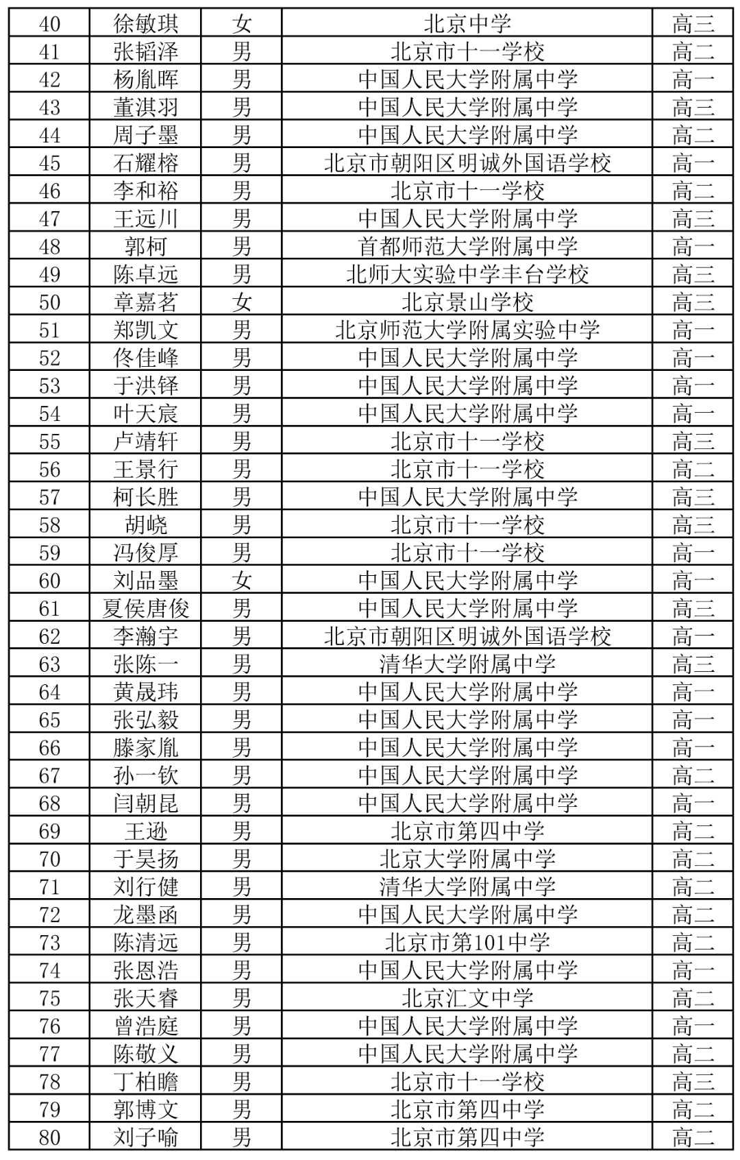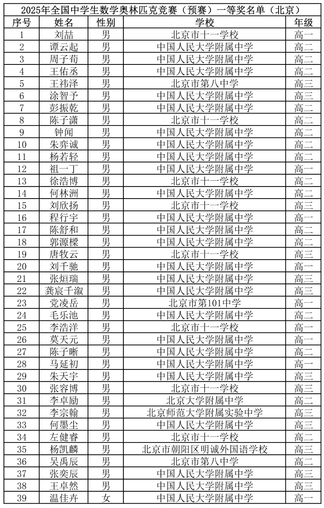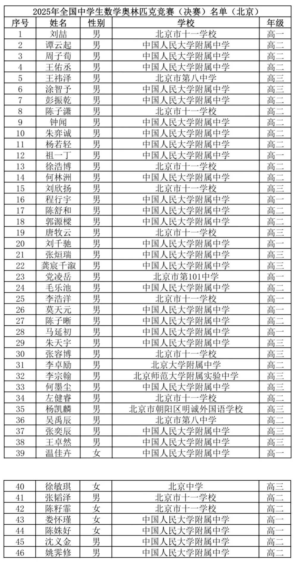 从官方公示的决赛获奖名单来看,此前网传的来自十一学校的刘喆位列第)