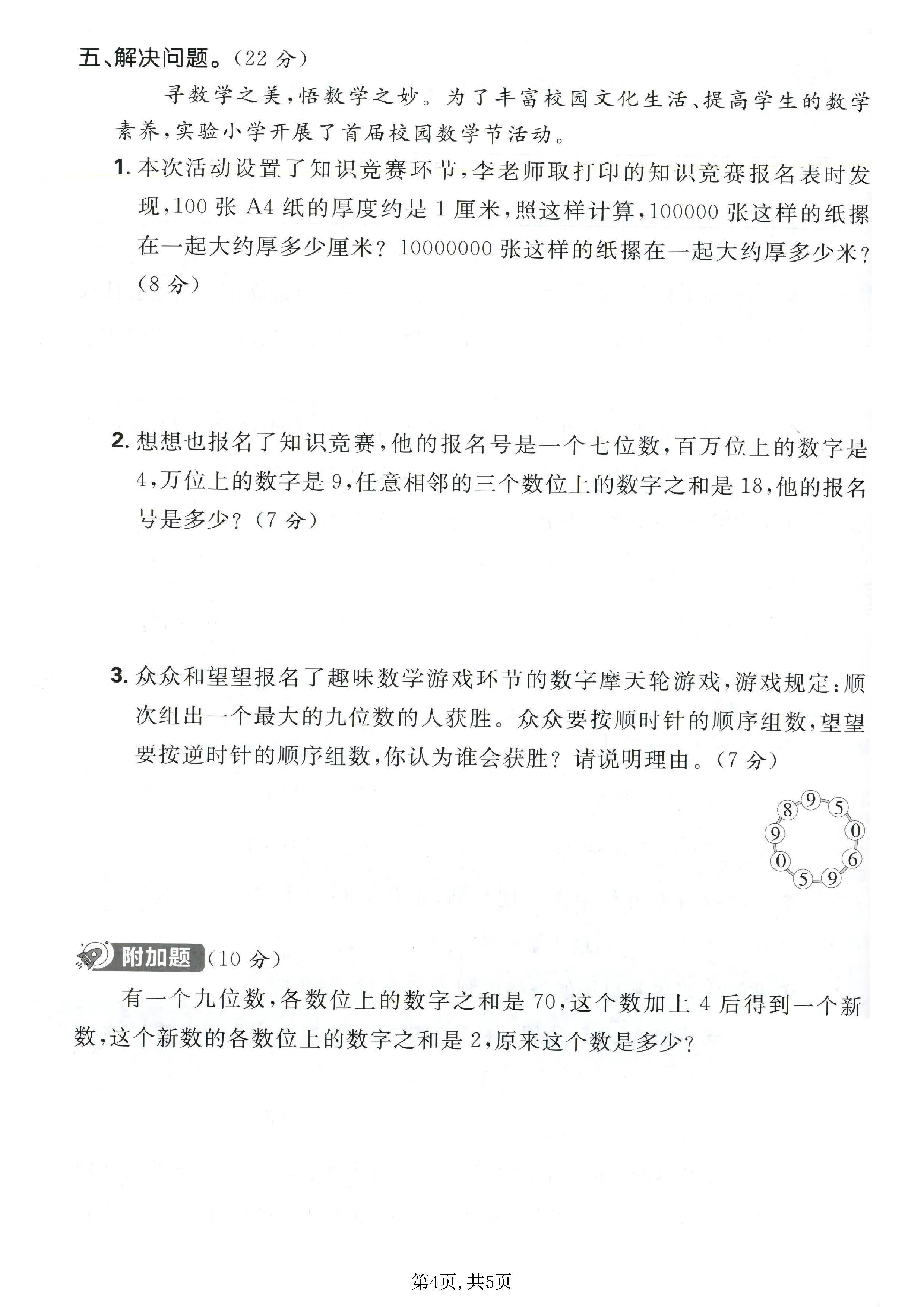 以下是四年级(上)数学第一单元《人教版》的知识点总结: