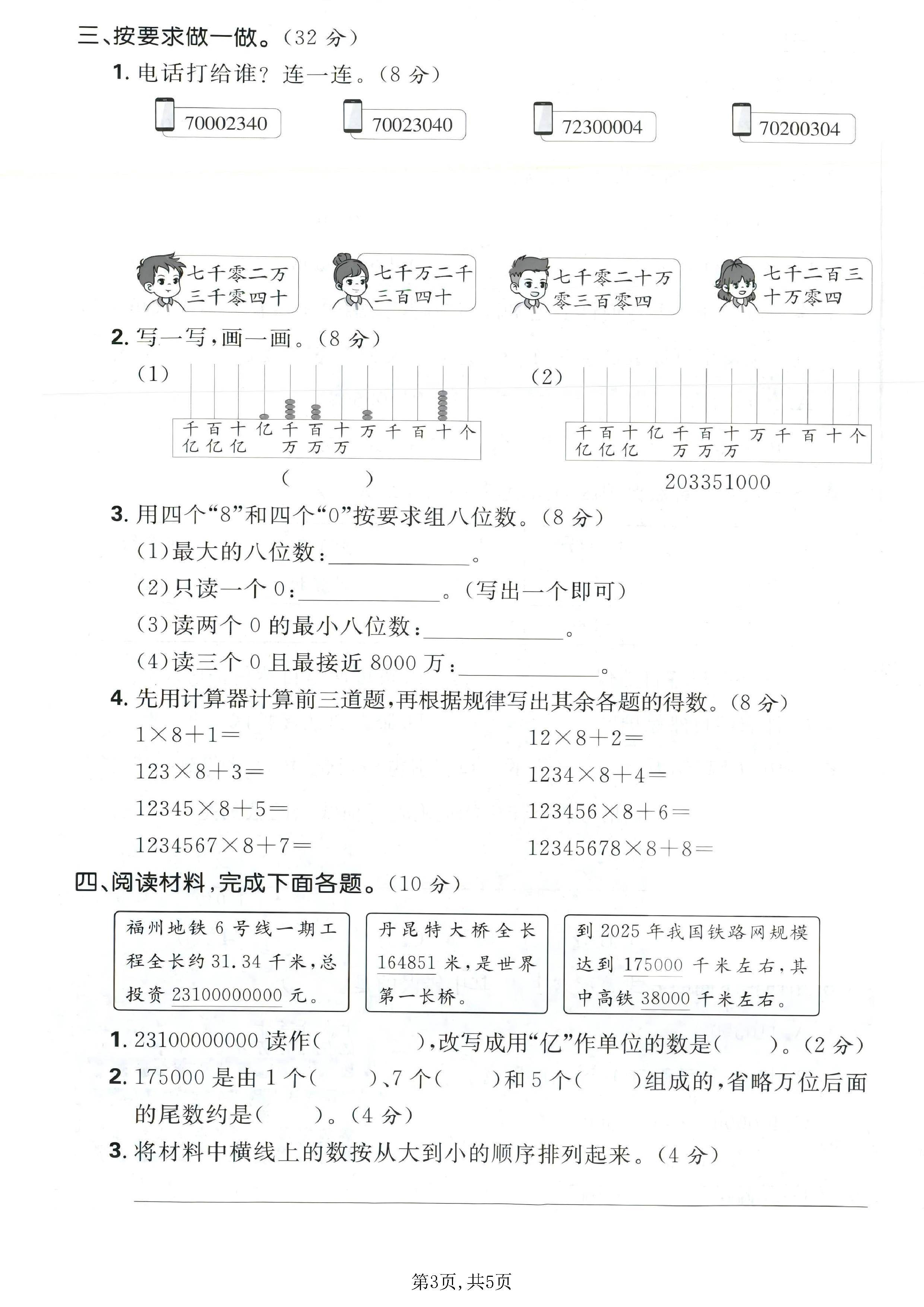 读法:先分级,从最高级读起,读完亿级或万级的数,要加 “亿” 字或 “万” 字,每级末尾的 0 不读,其他数位上有一个 0 或连续几个 0,都只读一个 0。