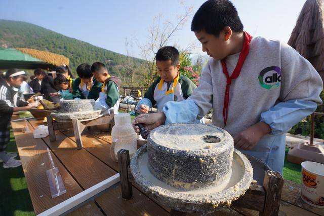 在“柿柿如意非遗特色展”中,学生们现场展示了吊炉烧饼制作、柿子面点制作、柿子脱涩、秸秆扎刻、传统石磨等传统技艺。