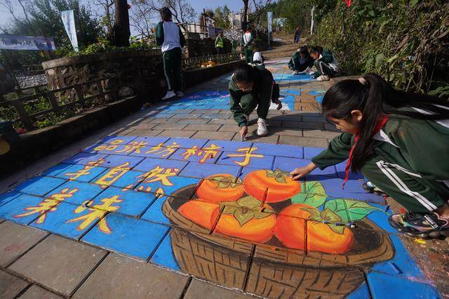 同时,学生创作的柿子主题地画、黑板报、粉笔画、剪纸、工笔绘画等作品,展现了他们眼中柿子的多彩形态与情感寄托。