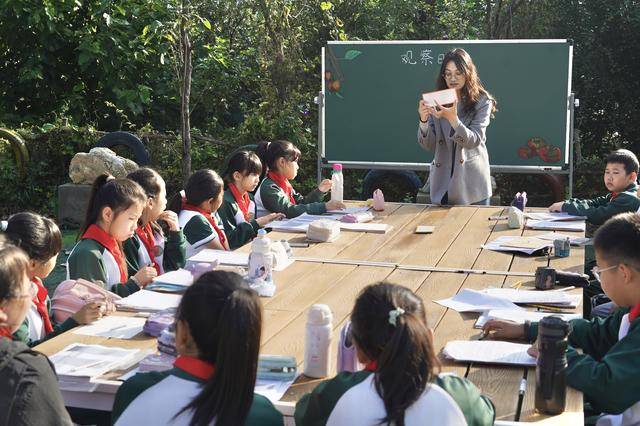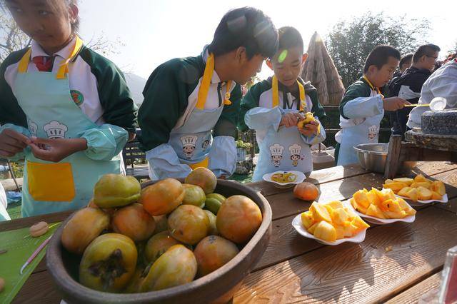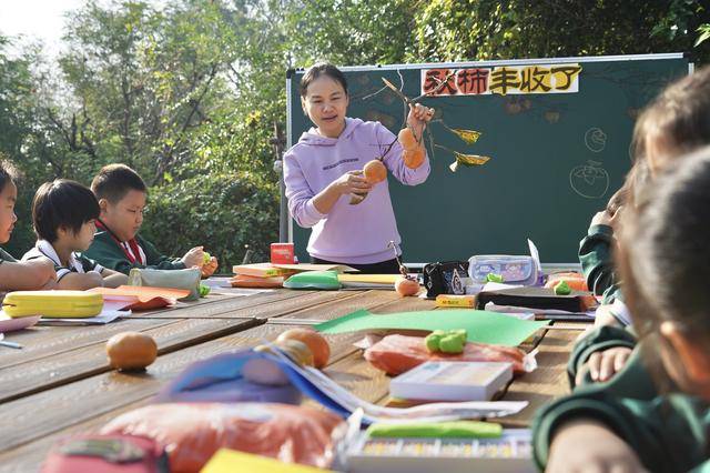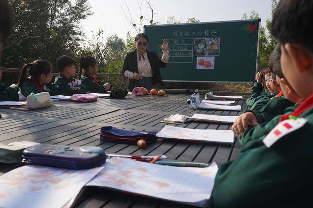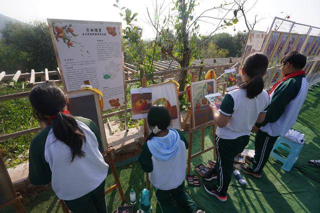“柿中有趣课堂展示”中,课堂搬到了柿子树下,来自多所学校的教师开展围绕以柿子为主题的学科融合课程。