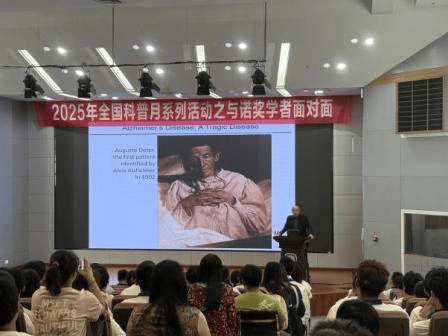在全场热烈的掌声中,诺奖学者托马斯·苏德霍夫教授健步走上讲台。他凭借深厚的学术功底和丰富的科研经验,针对自己在神经科学领域的重要研究成果展开了精彩分享,让同学们对这一领域有了更为清晰和深入的认识。在研究成果介绍环节结束后,同学们踊跃提问,托马斯·苏德霍夫教授热情、耐心的逐一进行了细致解答,并分享了自己在科研过程中的思考方法和宝贵经验。临近讲座尾声,学生代表怀着崇敬之情为托马斯·苏德霍夫教鲜花致谢。