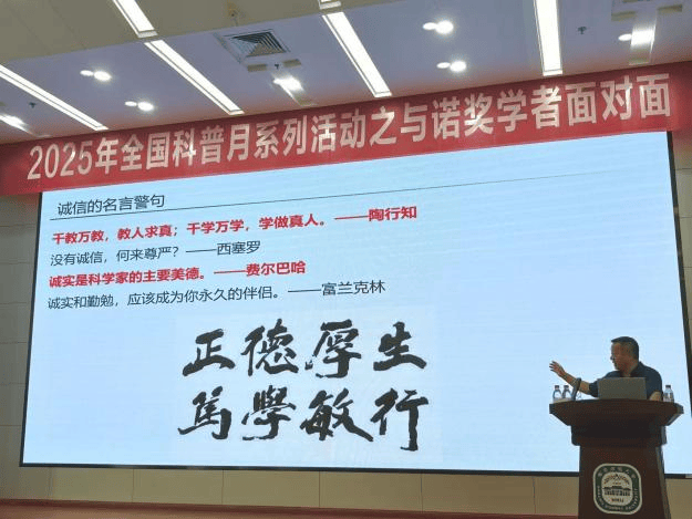 9月12日上午9时,为进一步强化新生的学术素养,拓宽其国际科研视野,我院成功举办了“诺奖学者面对面”学术交流活动讲座。本次活动由食品与制药工程学院院长张幸主持,党委副书记孙友莲发表了热情洋溢的开场致辞,对诺奖学者的到来表示热烈欢迎,并鼓励同学们积极交流、认真学习。