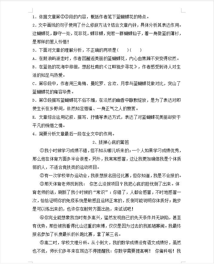 记叙文阅读:把握记叙的六要素,理清顺叙、倒叙、插叙等顺序及其作用,分析人物形象,理解环境描写的作用,体会记叙、描写等表达方式的综合运用。