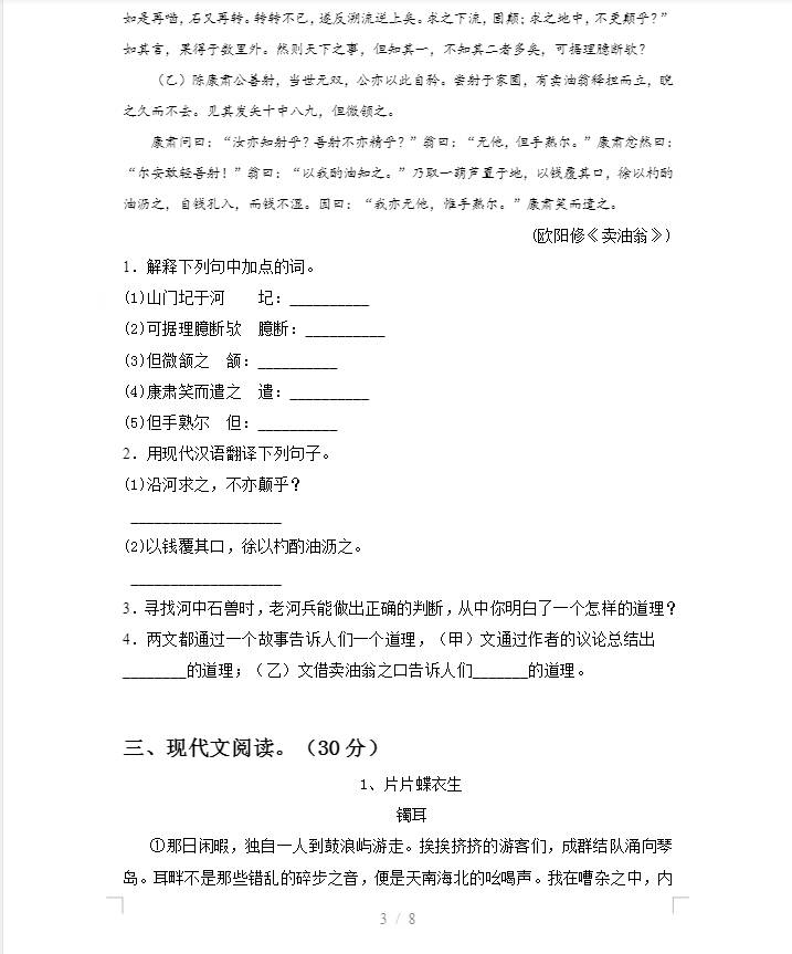 文言文翻译:能借助注释和工具书,理解浅显文言文的基本意思,将重点句子翻译成现代汉语,翻译时要注意语序和关键词的翻译。