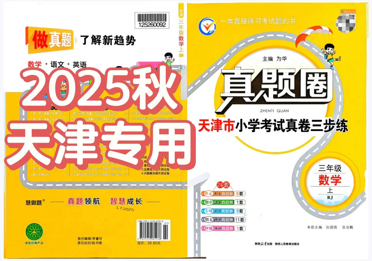 天津三年级宝妈必入!数学提分就刷这本题 娃三年级数学总在及格线徘徊?别瞎买练习册了!天津本地宝妈实测,《2025秋真题圈》 才是精准提分神器,天津专属真卷:全是本地名校单元考、期末考真题,题型、考点完美适配人教版三年级上册,练的就是要考的。 三步练透考点:先刷单元基础卷打地基,再做专项突破卷攻难点,最后用期末模考卷实战,层层递进不盲目。 家长辅导不费妈:答案单独成册,扫码还能看解析,孩子错题自己懂,不用再为讲题抓狂。 每天20分钟,跟着真题练,开学后数学稳扎稳打!天津三年级娃闭眼入,早练早提分~