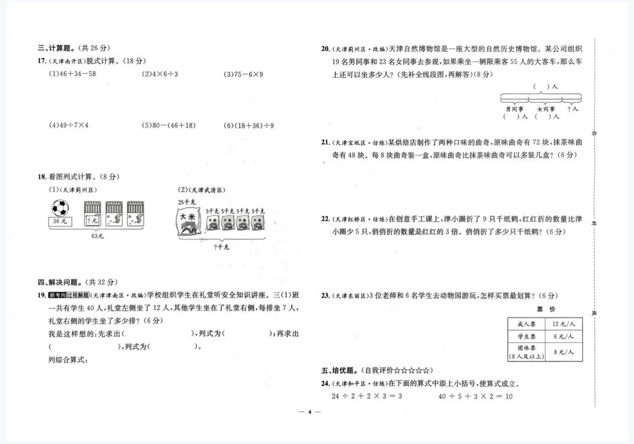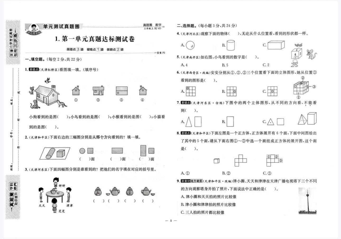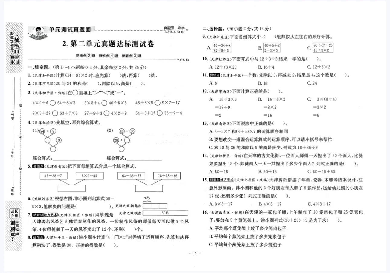 25秋天津专用真题圈数学人教三年级上册(电子版可打印)
